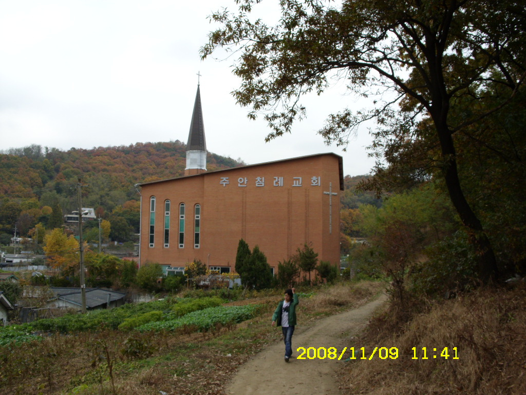 시립사격장을 완전히 벗어나면 작은 길이 나오고 교회가 신축되어 길을 막고 있습니다...