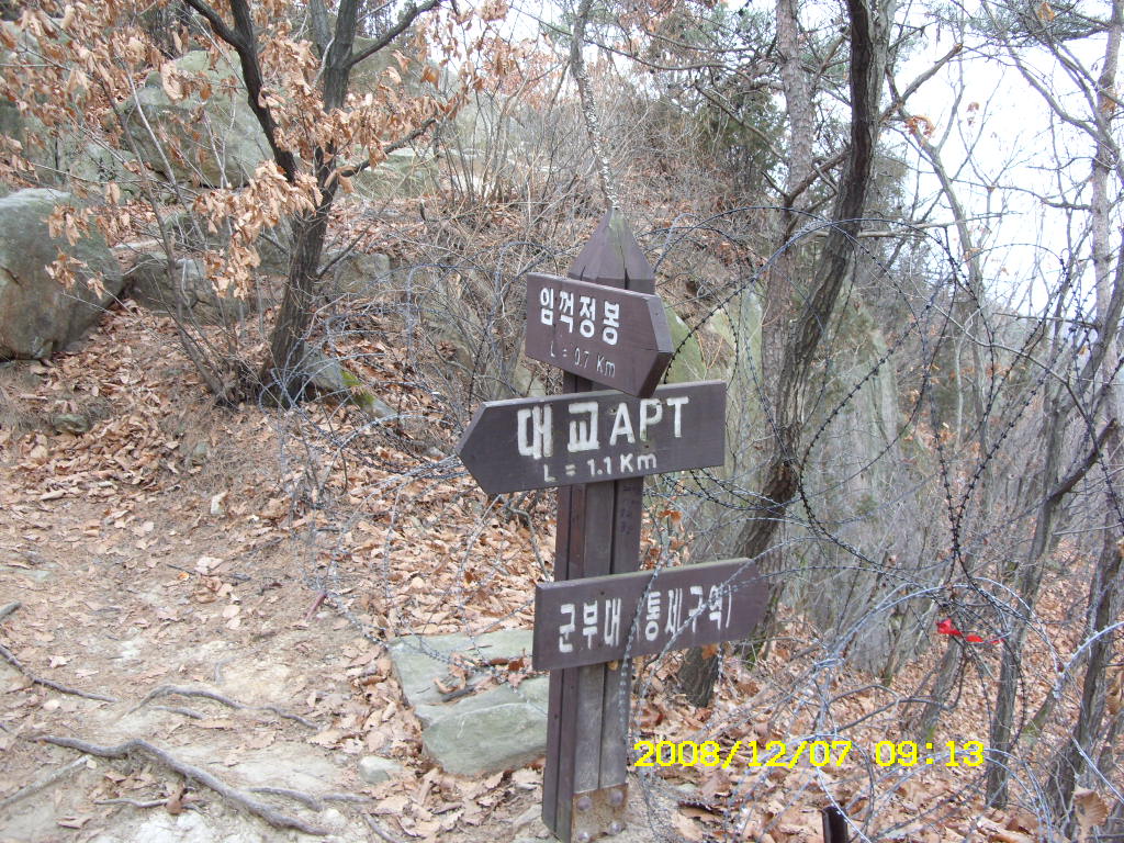 코 스 : 대교아파트(들머리) - 369봉삼거리 - 암봉 - 임꺽정봉 - 420봉 - 쉼터사거리