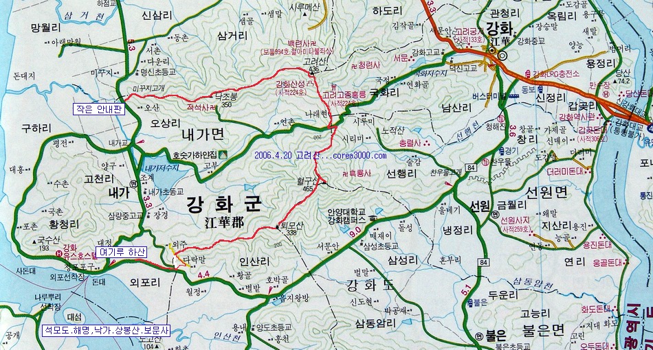 미꾸지고개(들머리) - 낙조봉 - 고인돌군 - 삼거리 - 철쭉전망대 - 고려산