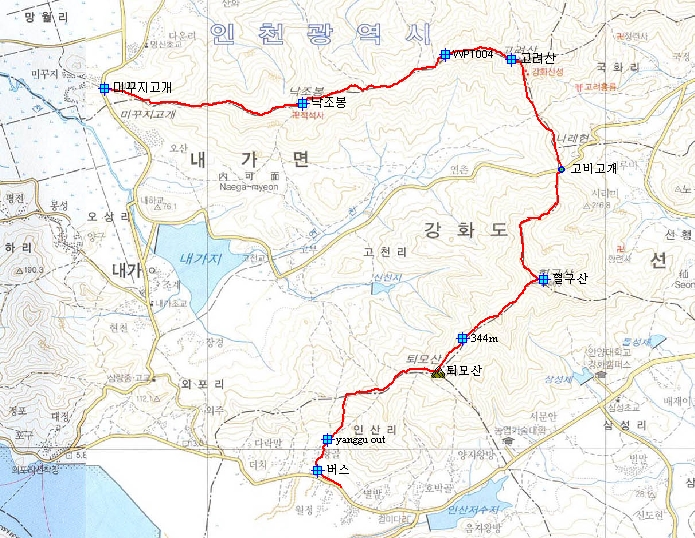 - 고비고개 - 혈구산 - 344봉 - 퇴모산 - 내가삼거리 - 천주교야영장(날머리)