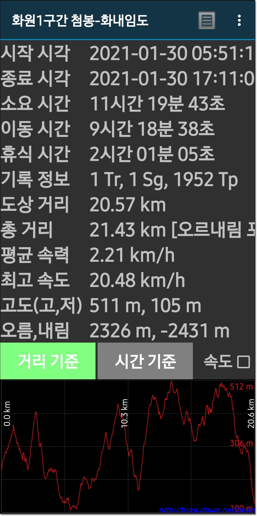 산행시간 : 11시간 20분 / 식사및휴식 2시간1분 포함