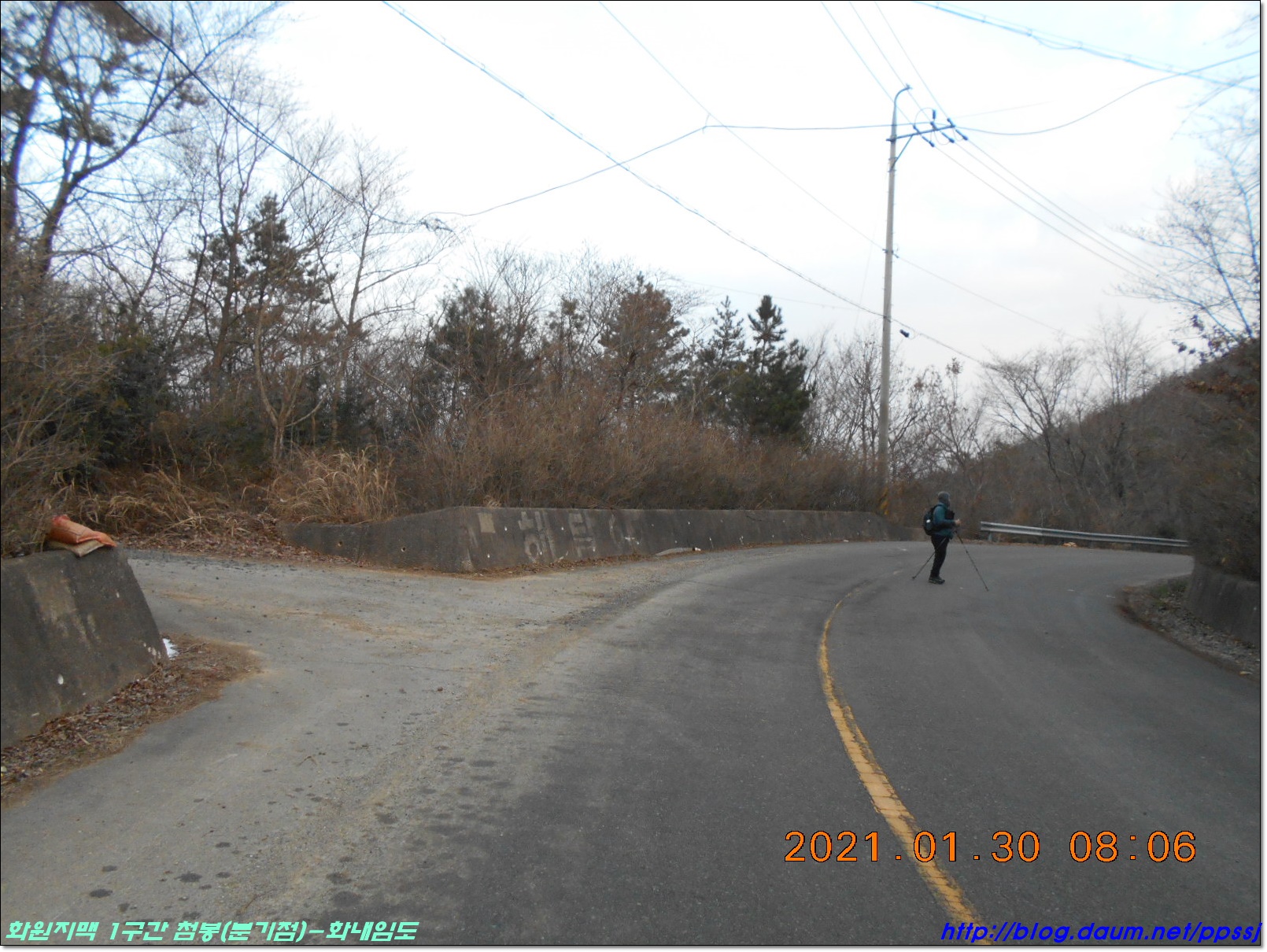 - 뚜드럭재까지 진행하려 했으나 다른 일정이 잡혀 화내임도에서 1구간 입학산행을 마무리합니다.