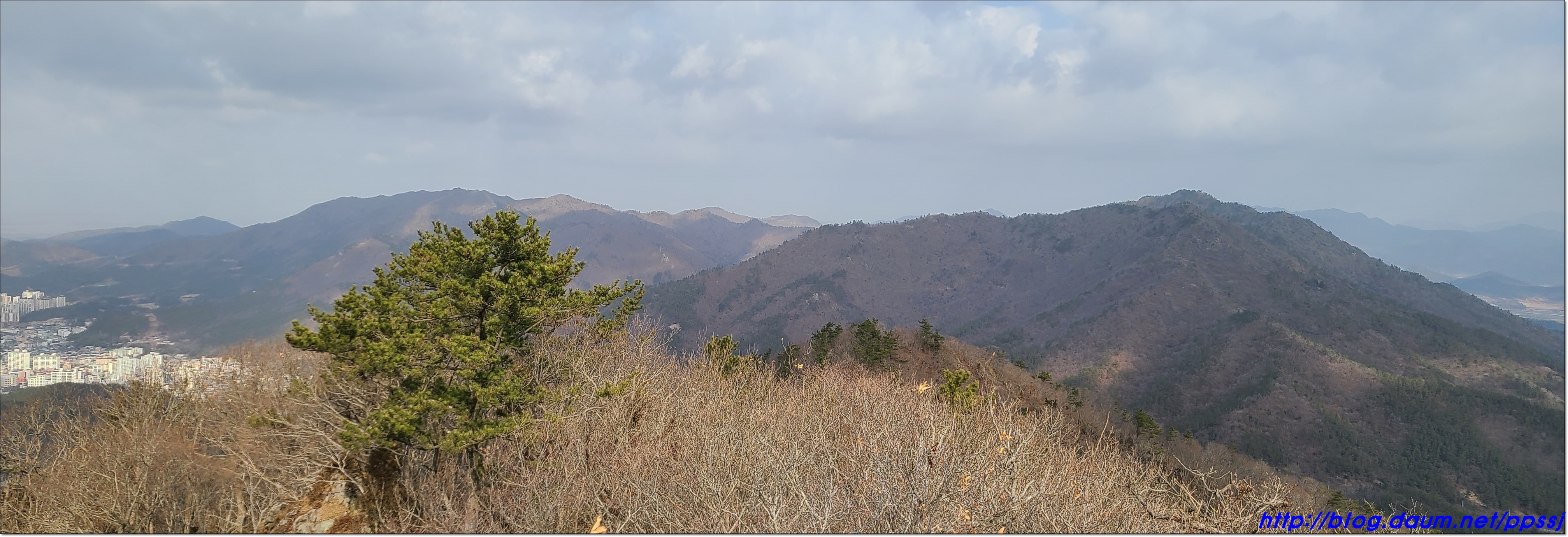 첨봉과 땅끝기맥은 뿌옇게 보입니다.