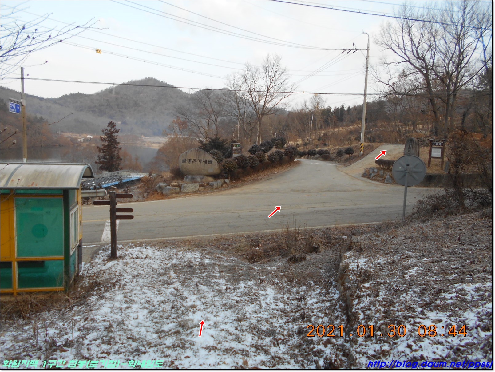 사진 좌측에 벤치 쉼터가 있어 탁배기 한잔하며 15분여 쉬었다가 갑니다.