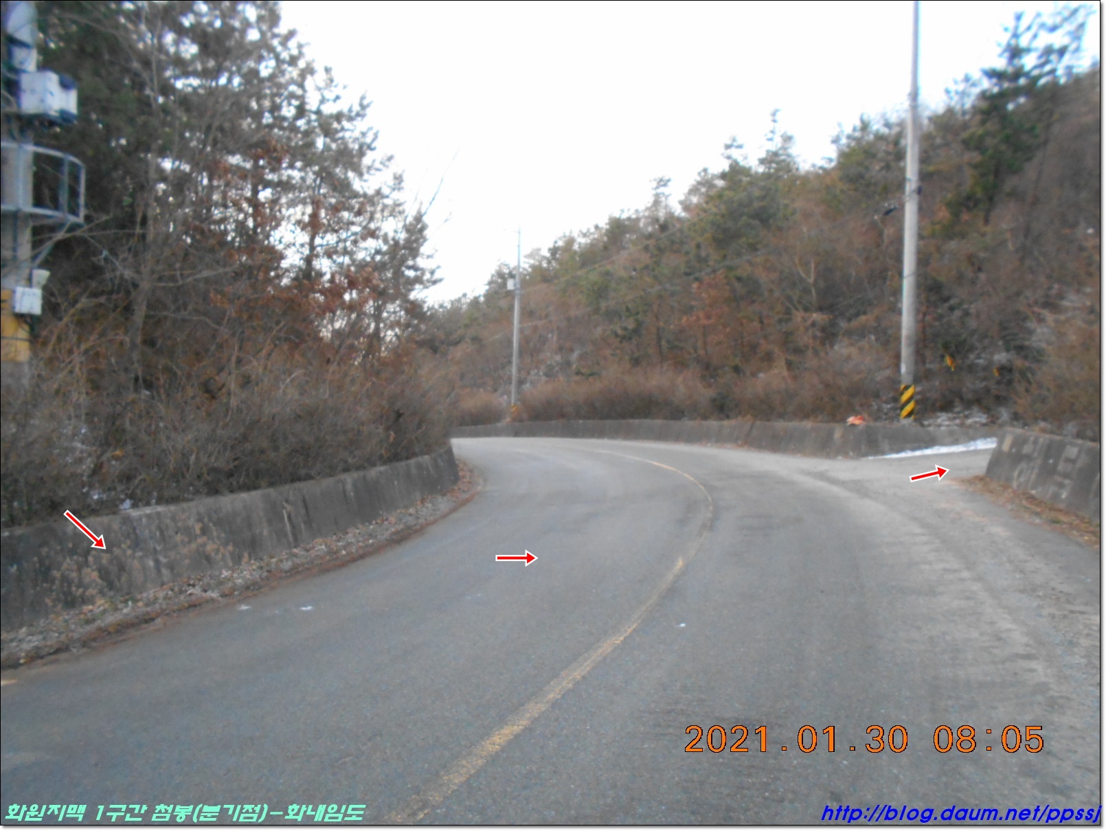 이정표 삼거리에서 직우틀 금강산 2.6km 방향 진행...