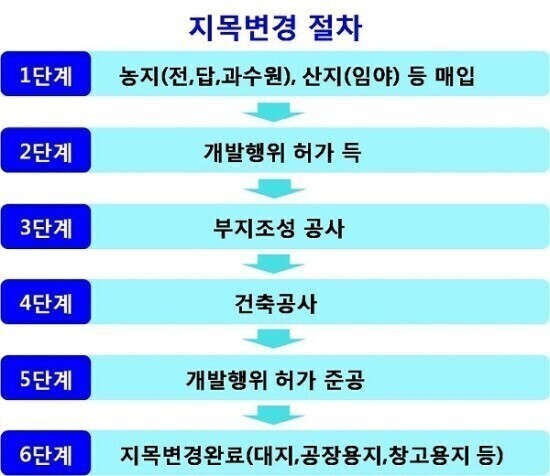 인터넷에서 공장설립허가를 받고 지목을 '공장용지'로 바꾸어 매도한다는 글도 보이는데, 공장을 다 짓고