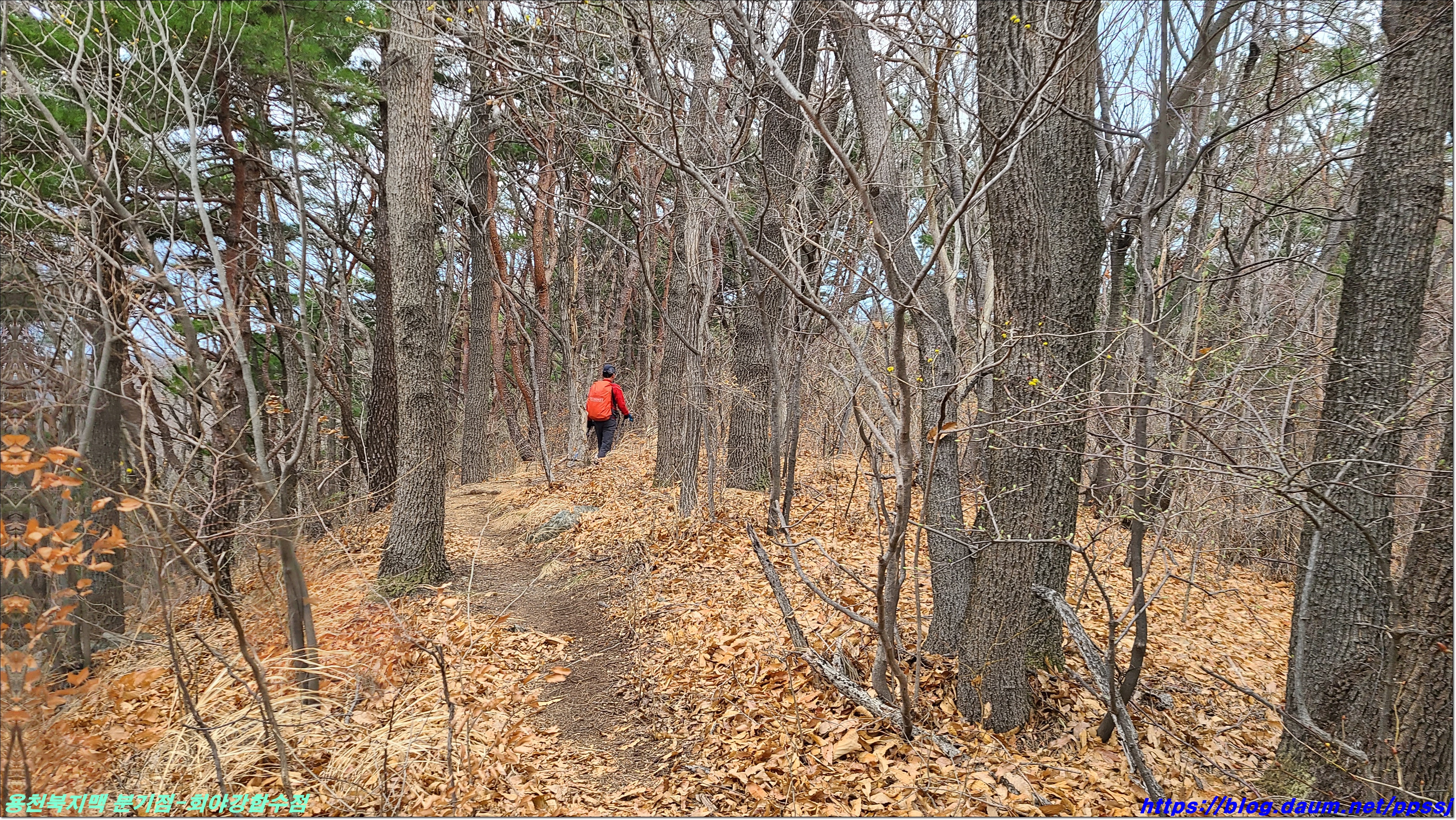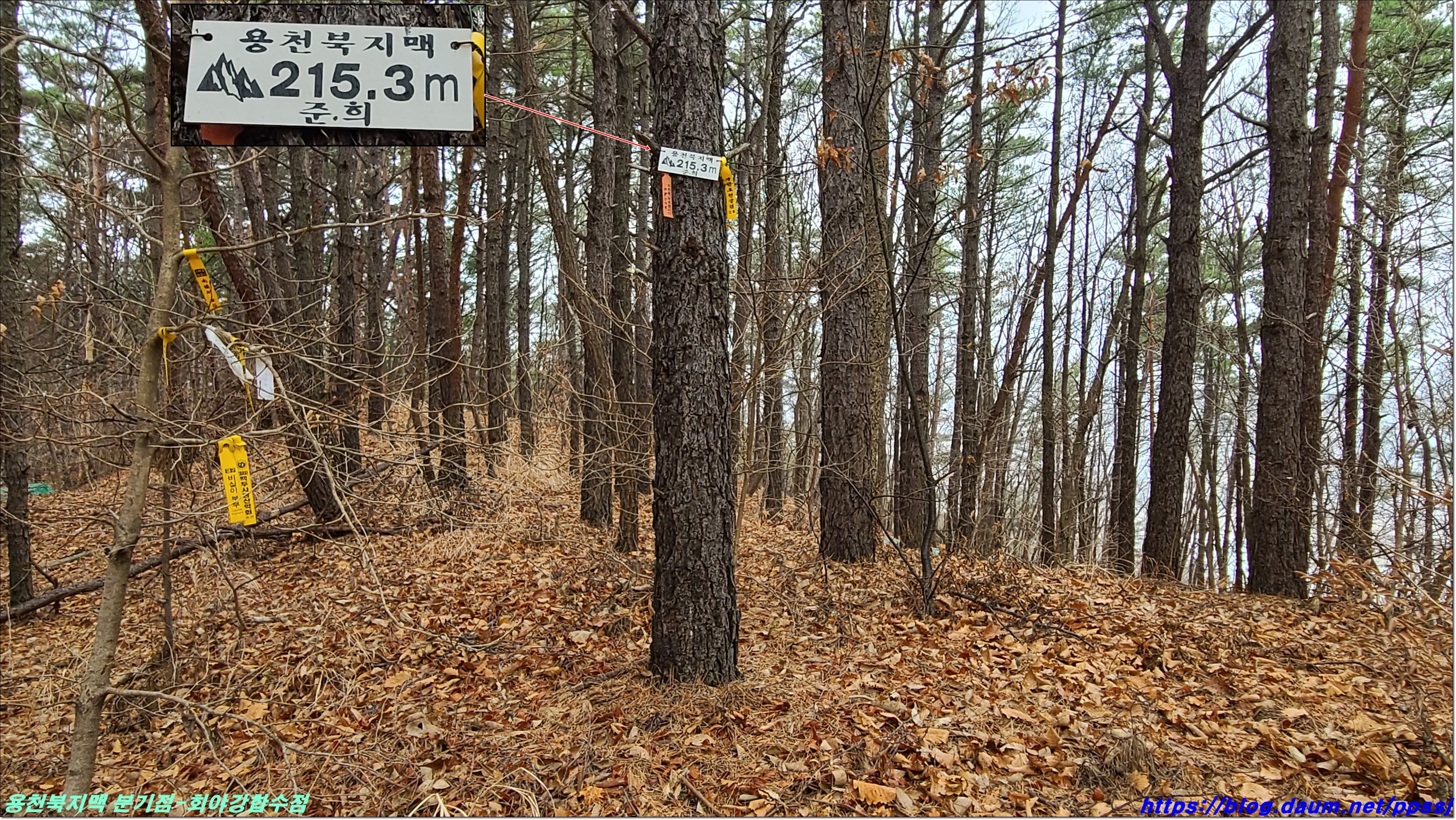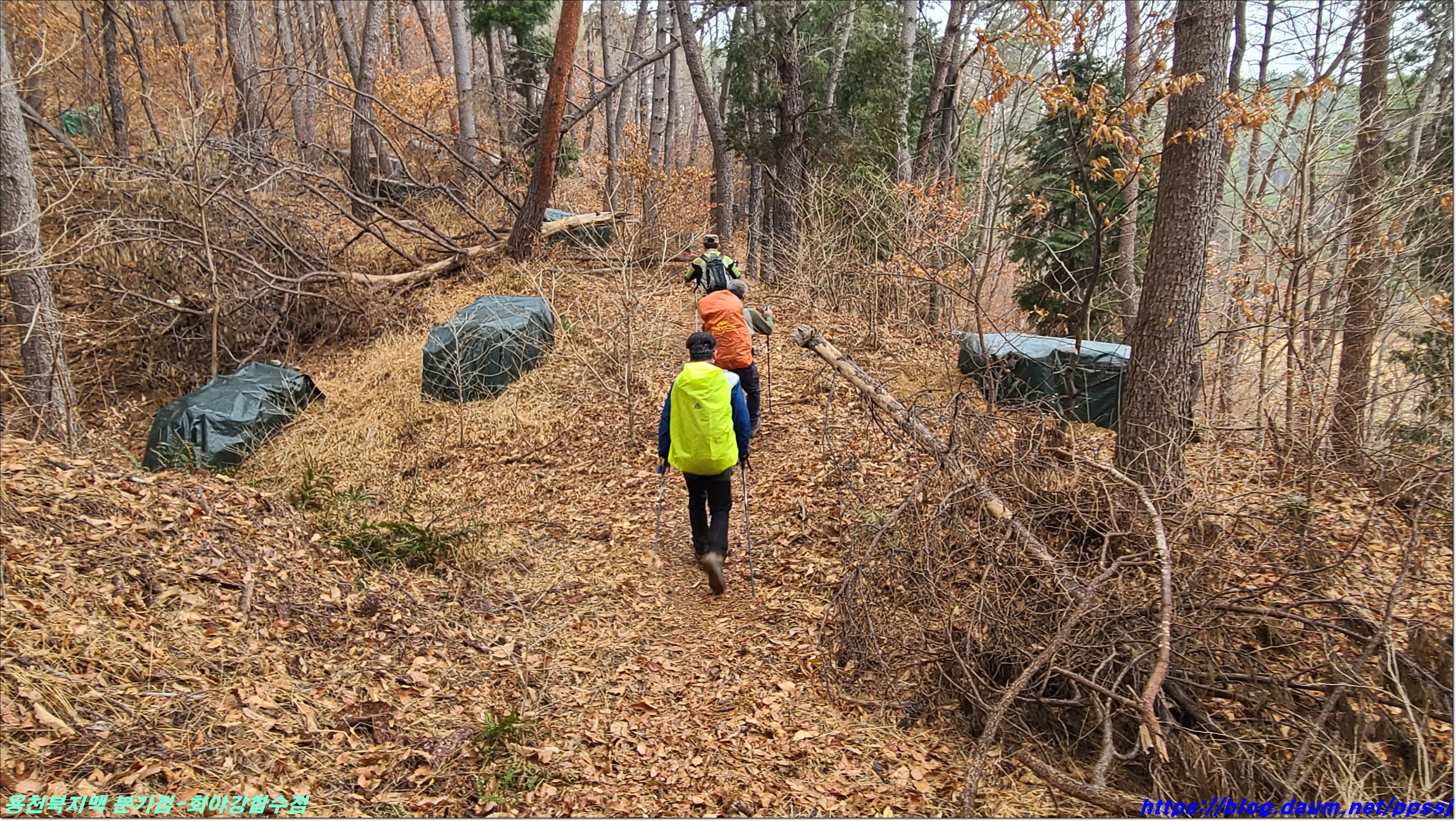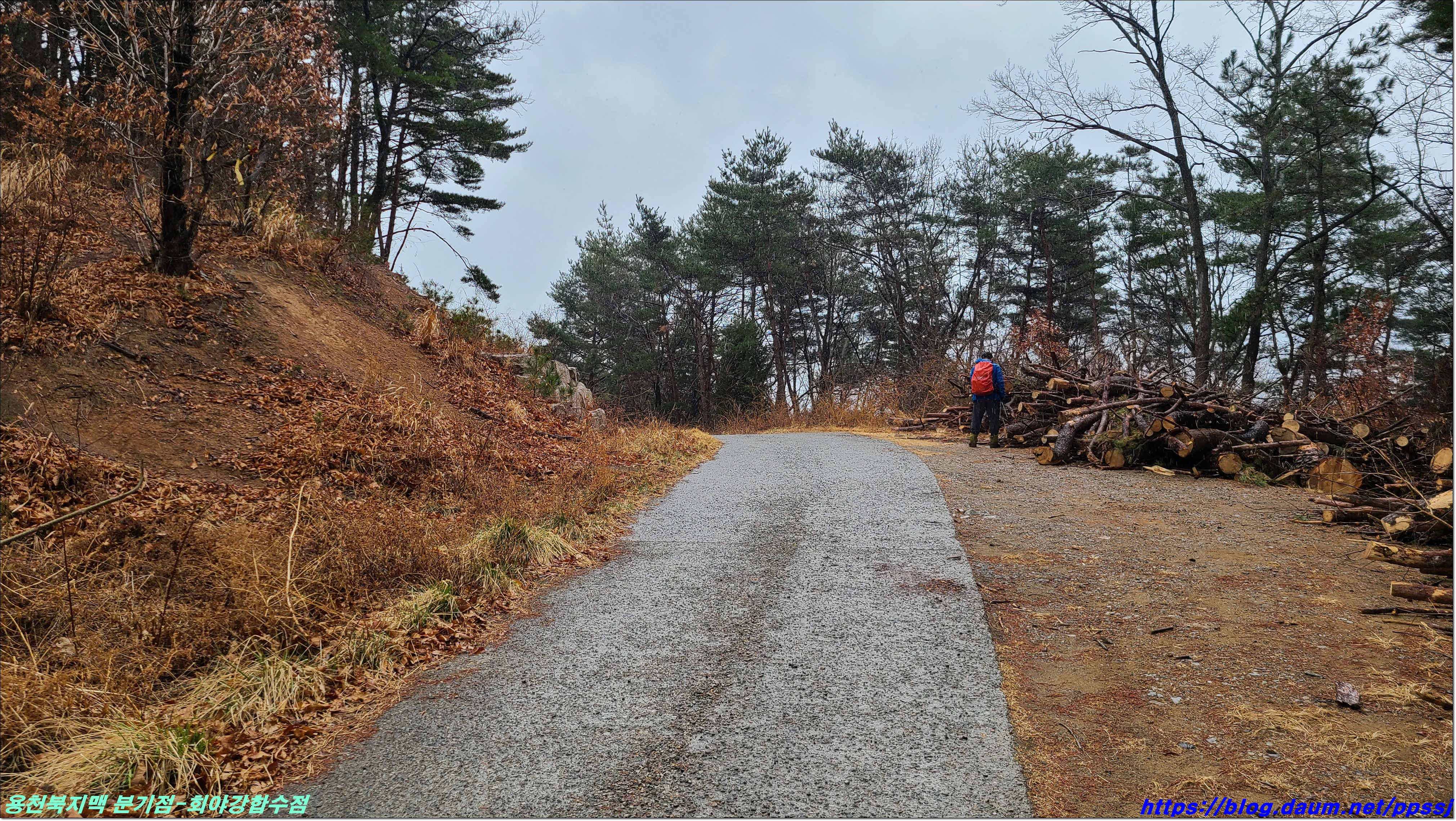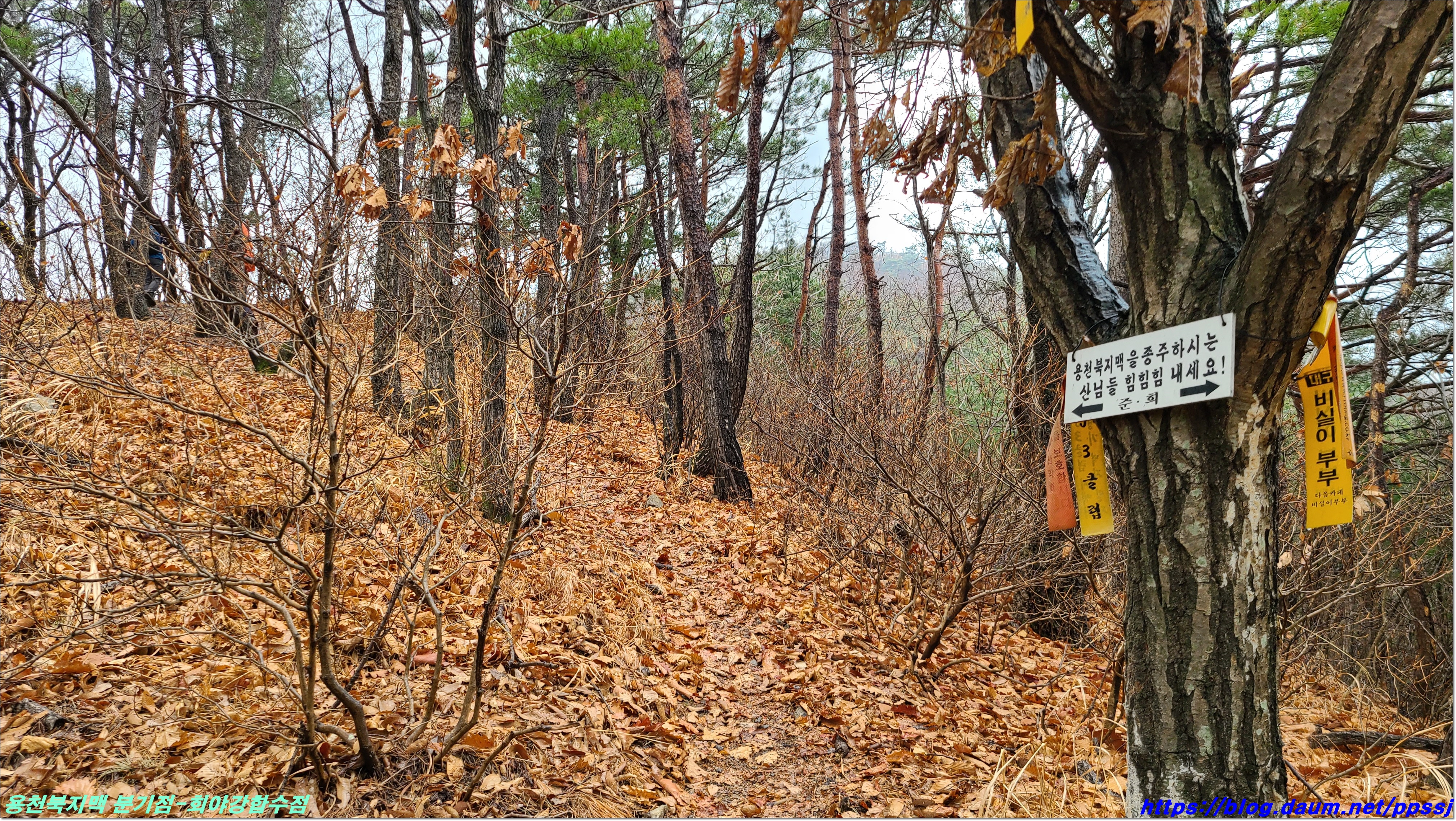 딱 한달전 2월13일에 걸었던 용천지맥 마루금에 접속해 분기점을 향해 올라갑니다.