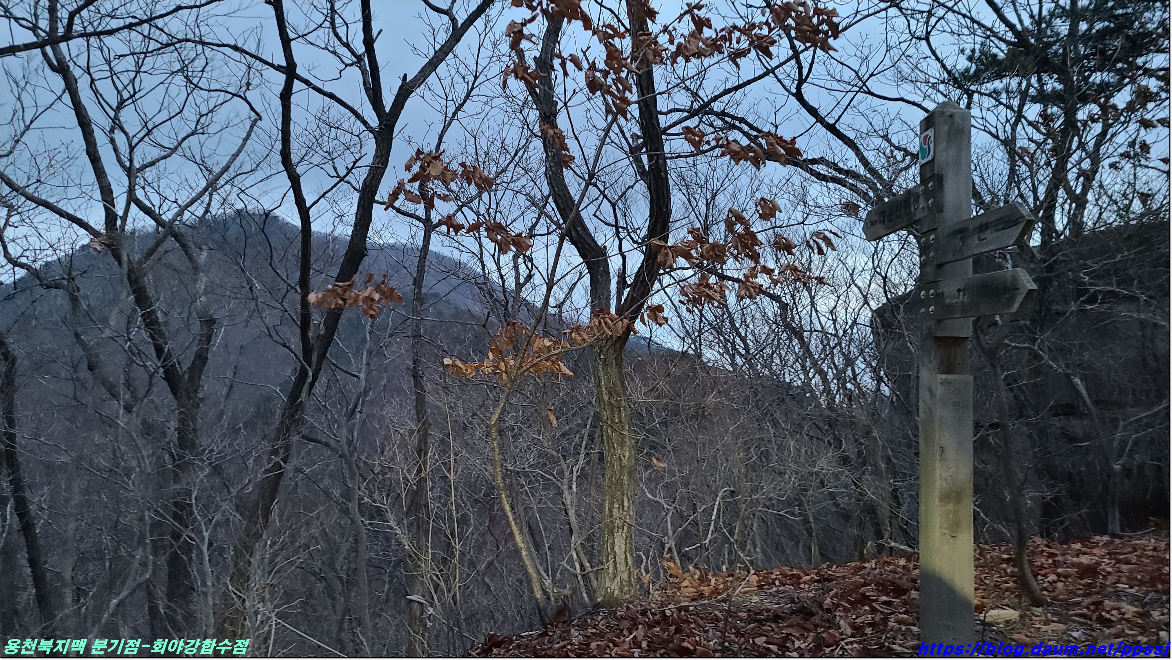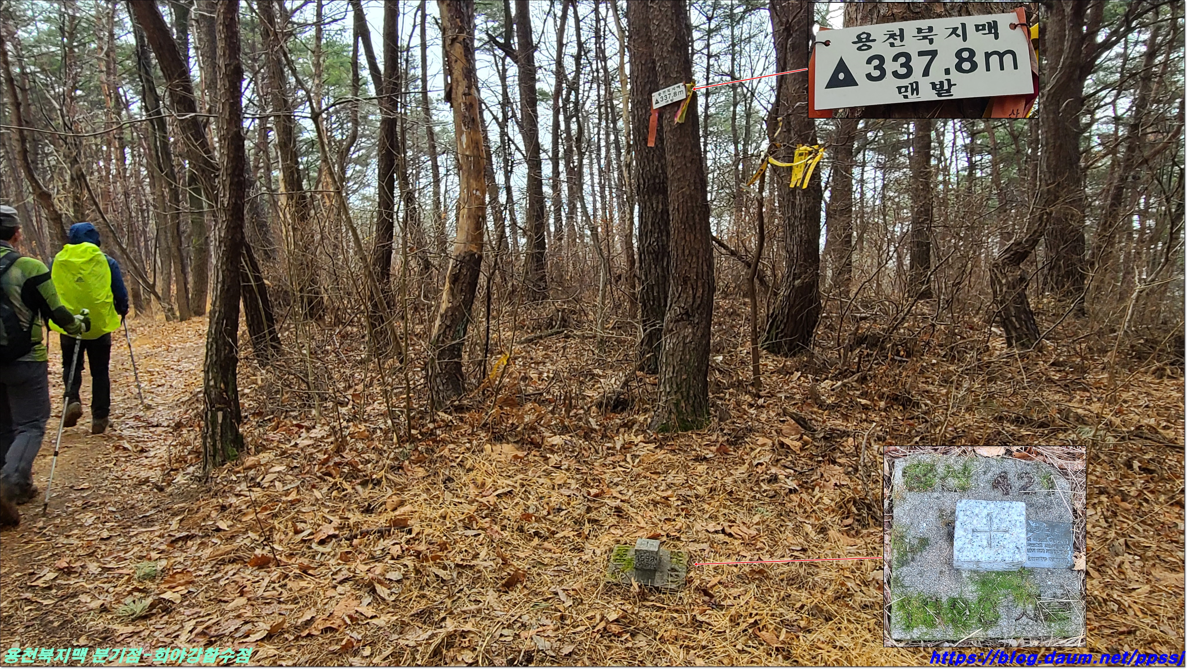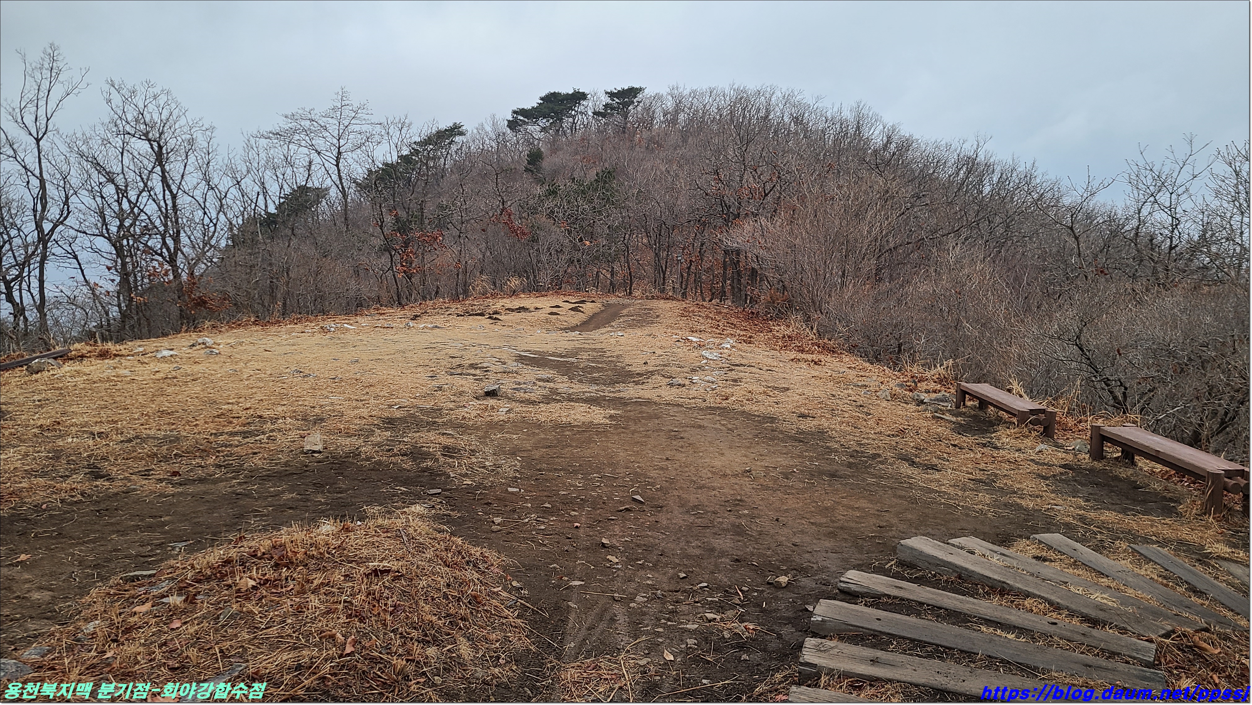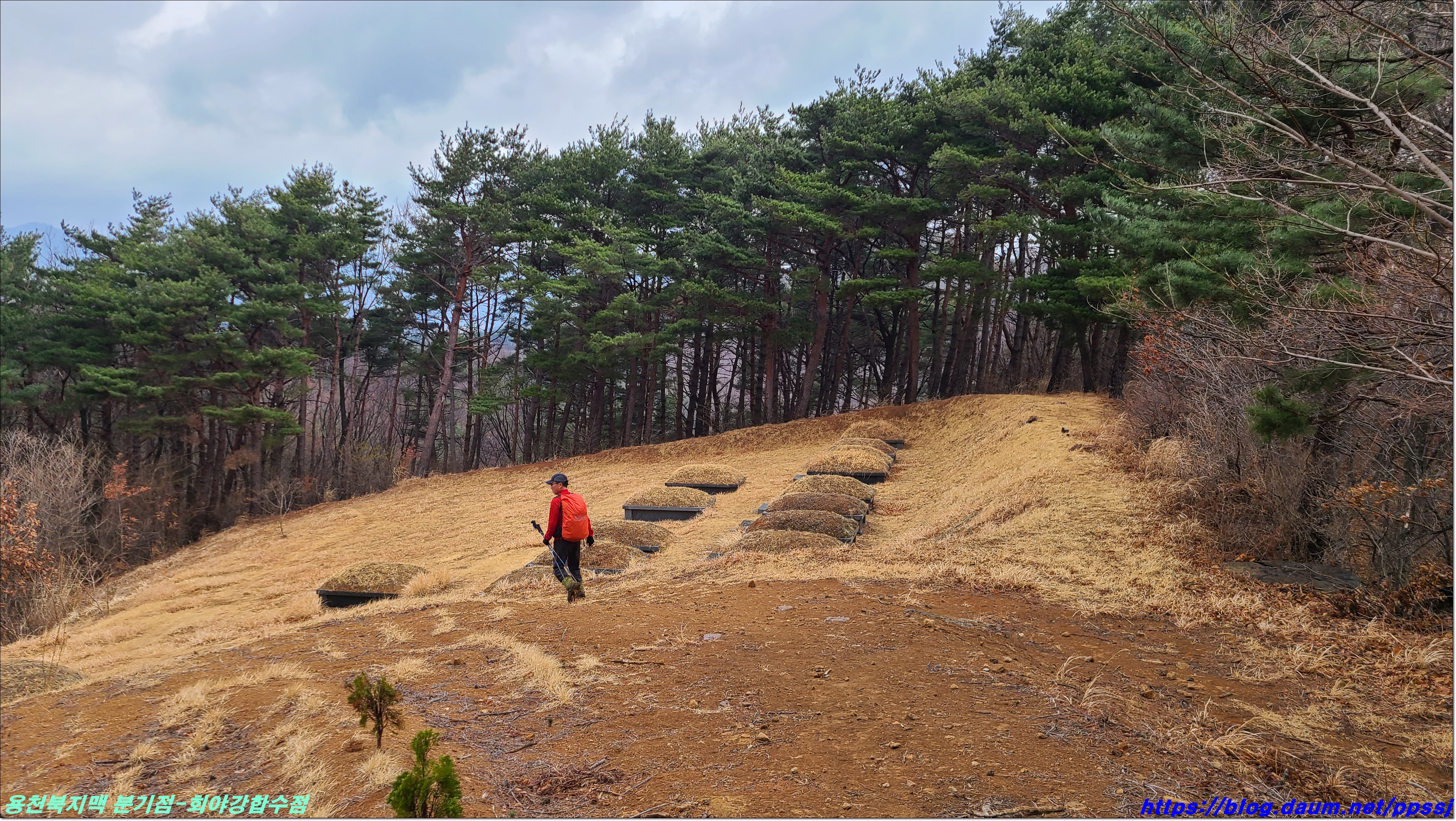 딱 한달전 2월13일에 걸었던 용천지맥 마루금에 접속해 분기점을 향해 올라갑니다.