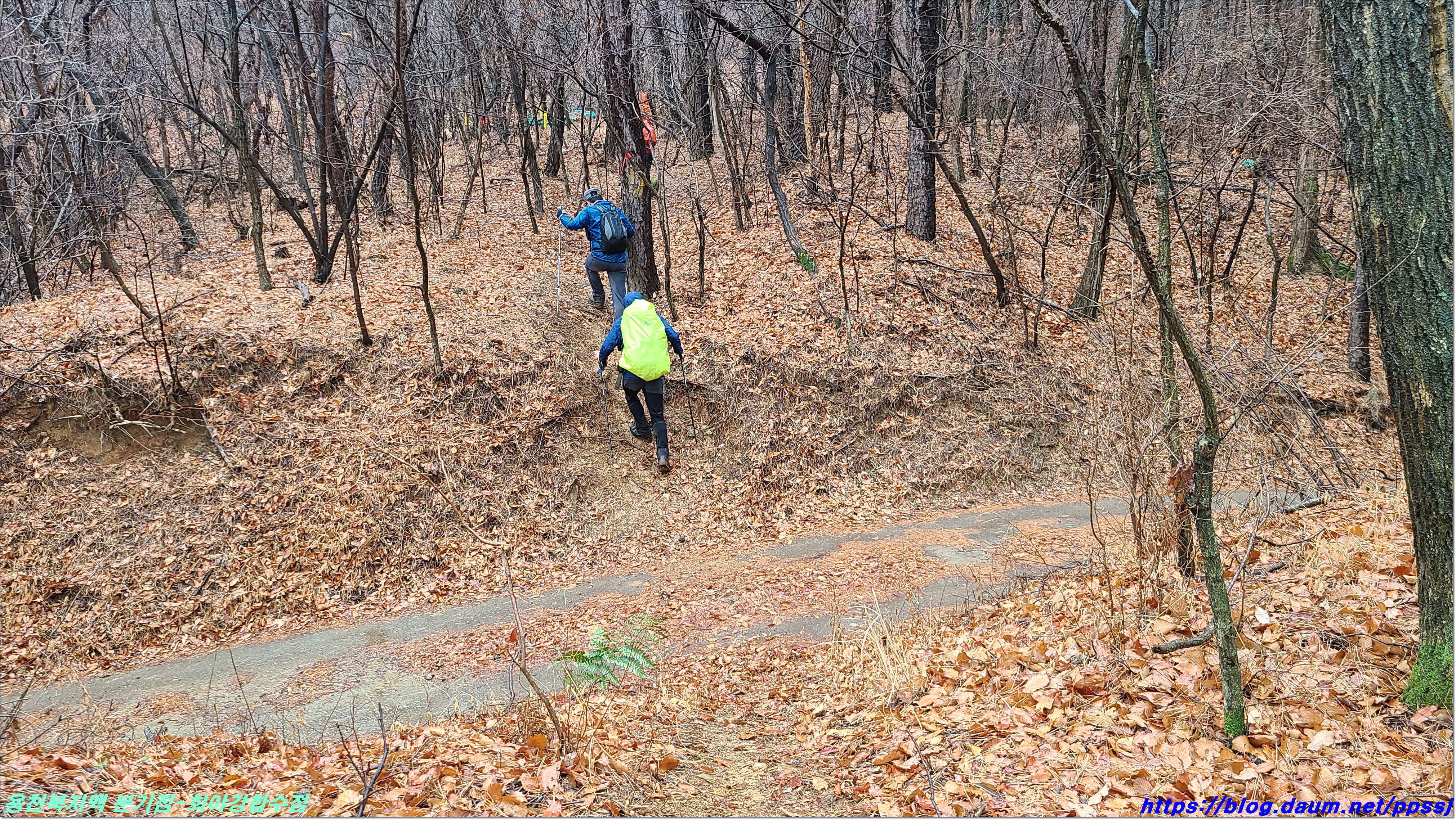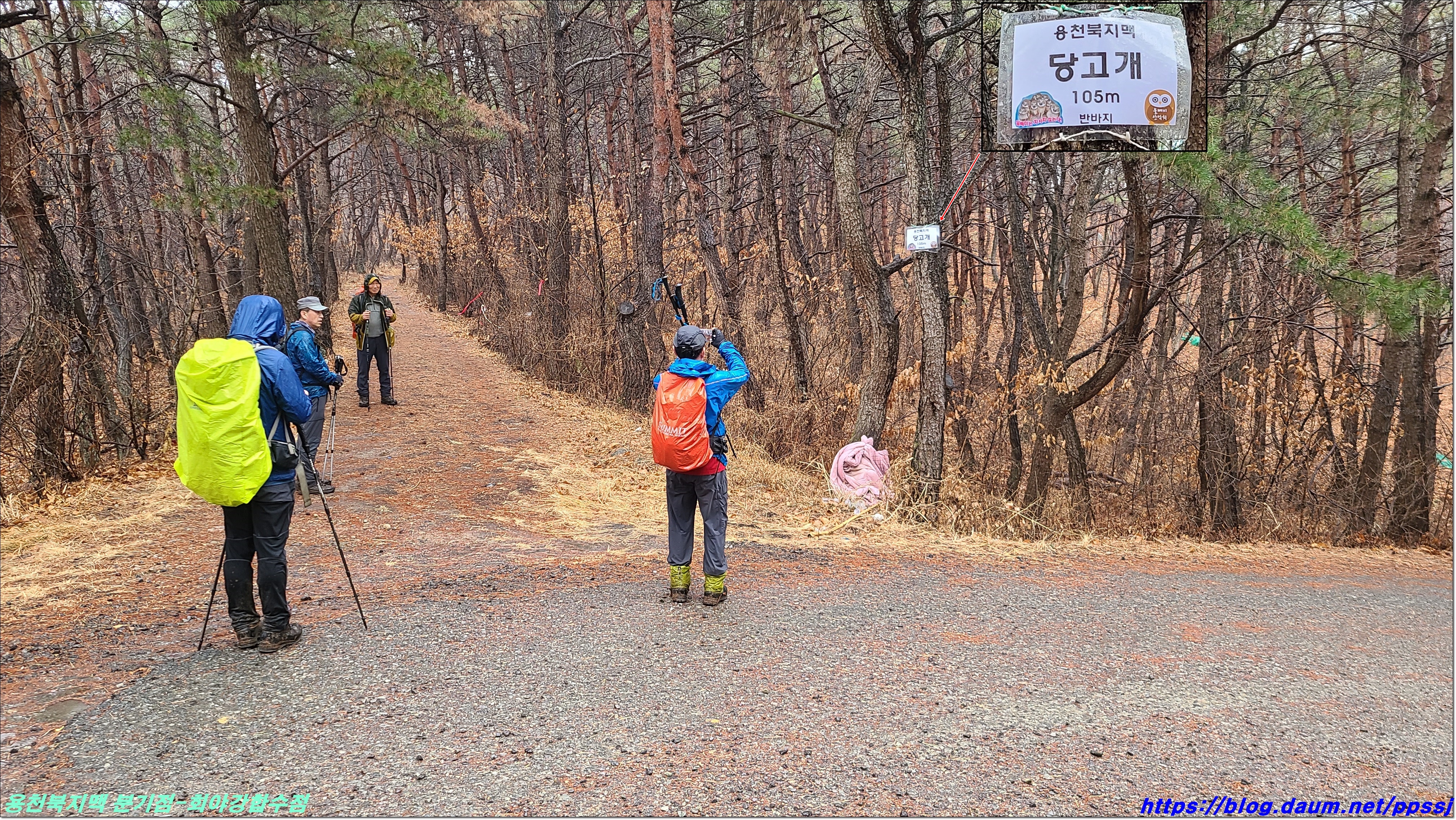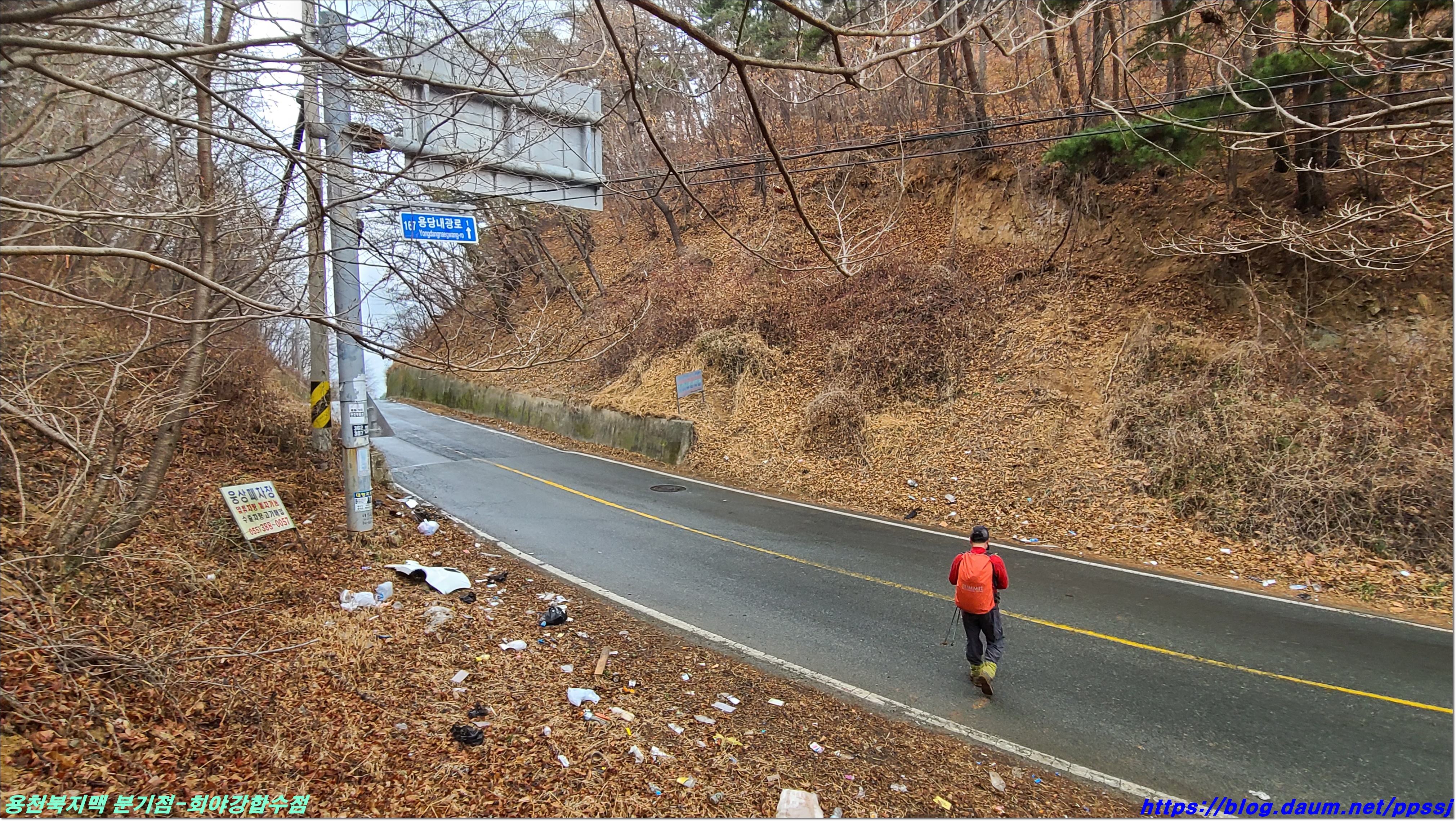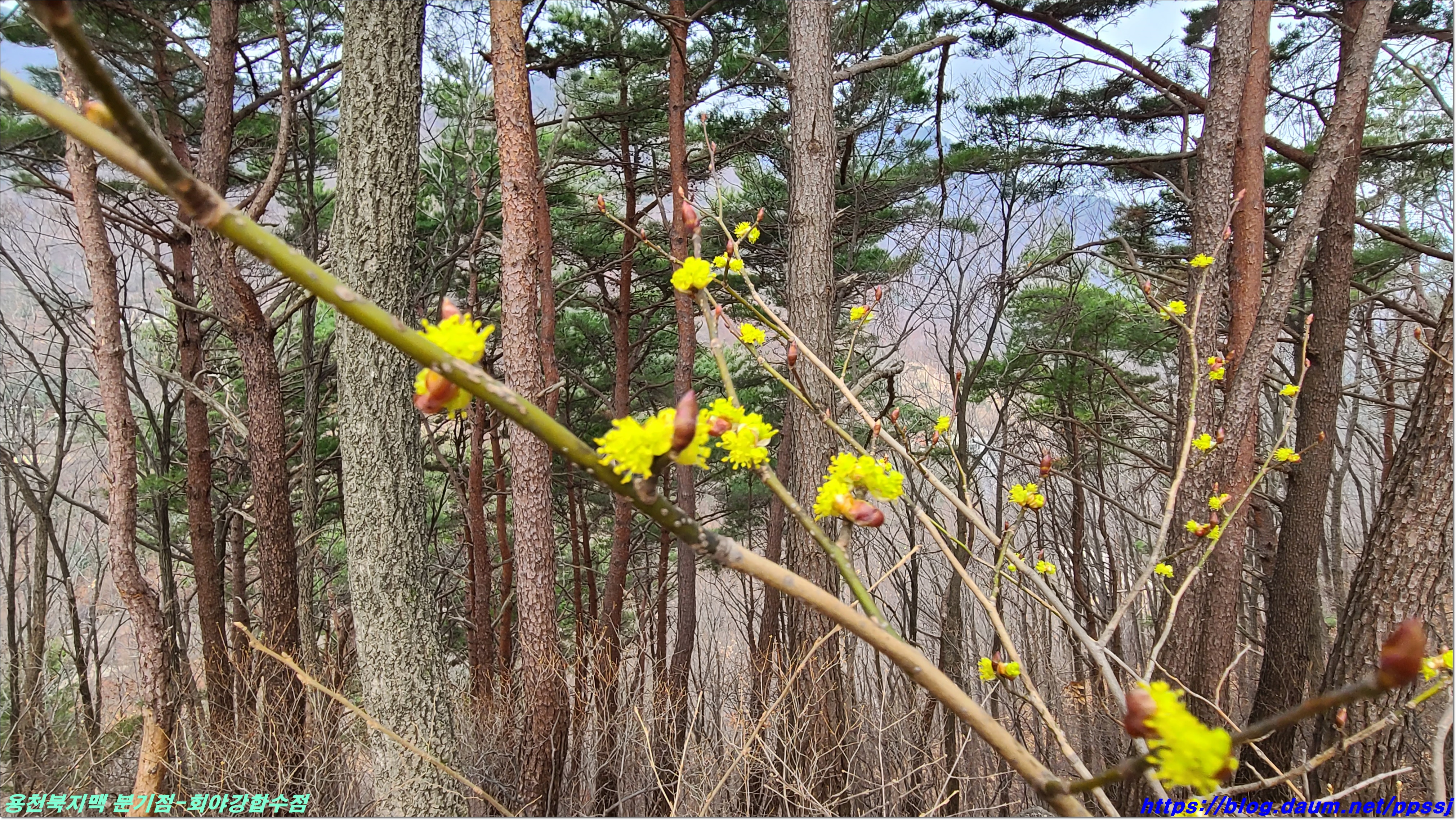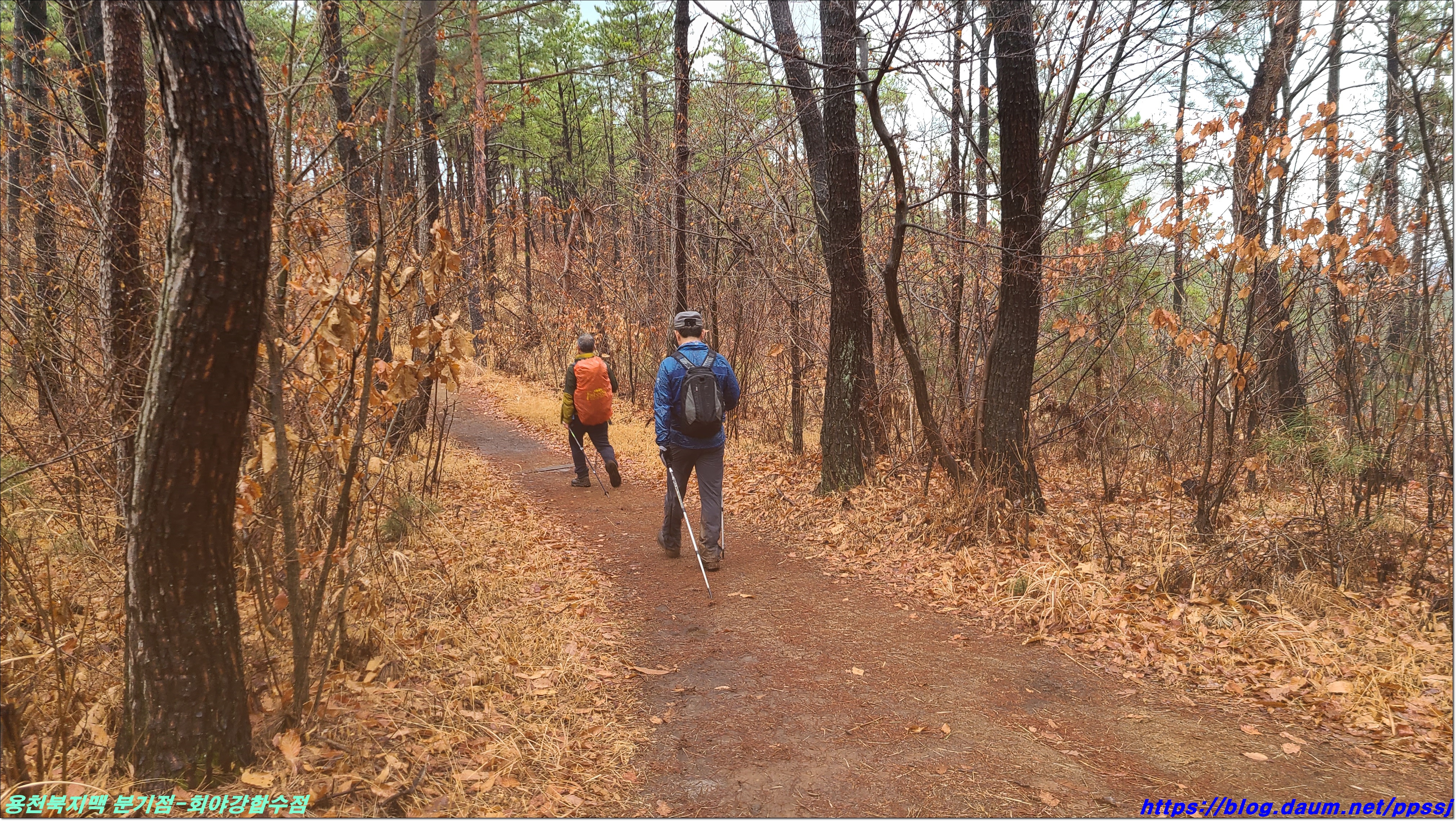 딱 한달전 2월13일에 걸었던 용천지맥 마루금에 접속해 분기점을 향해 올라갑니다.