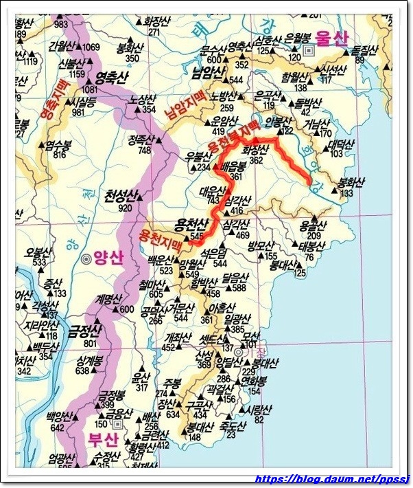 산행지 : 용천북지맥 분기점(488.7m)-회야강합수점 (기장군 정관읍/양산시 매곡동-울주군 온양읍)