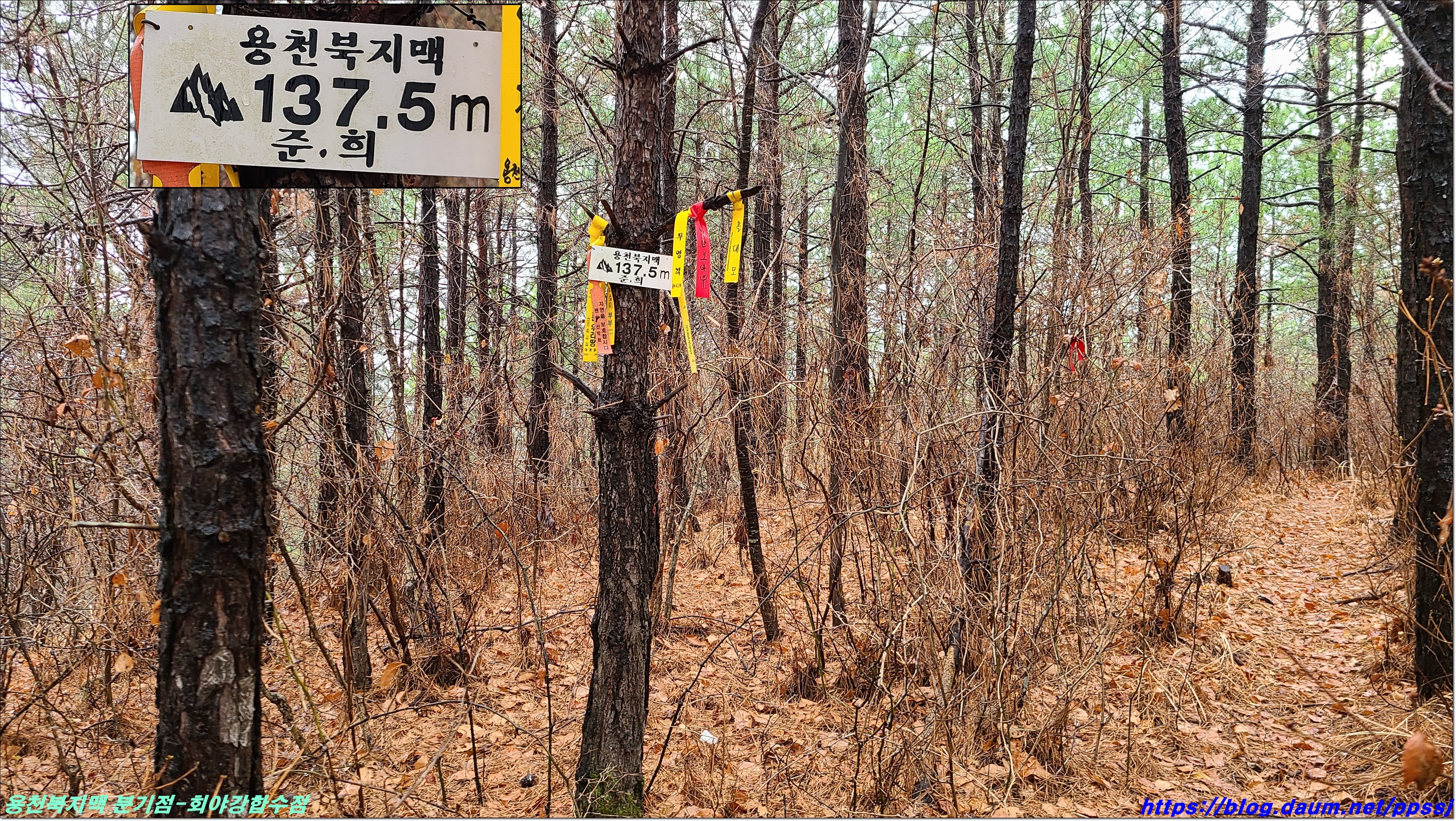 합수점에 도착하며 용천북지맥 종주산행을 마칩니다.