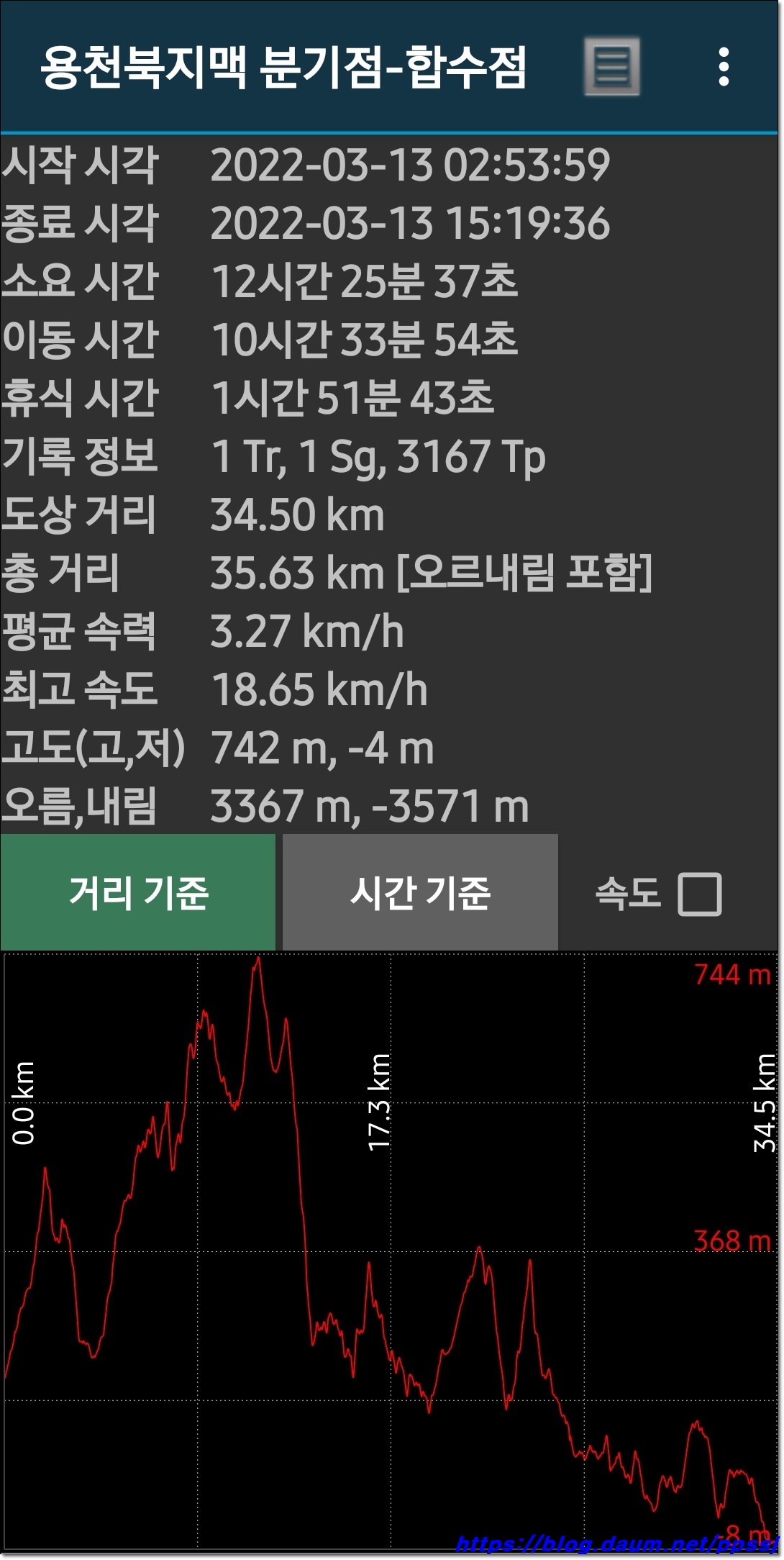 산행거리 : 실측지맥거리 : 32.4km (지맥누적거리 : 32.4km),