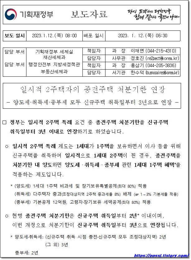 | 다주택자 취득세 중과 완화 - 보도자료 (0) | 2022.12.21 |