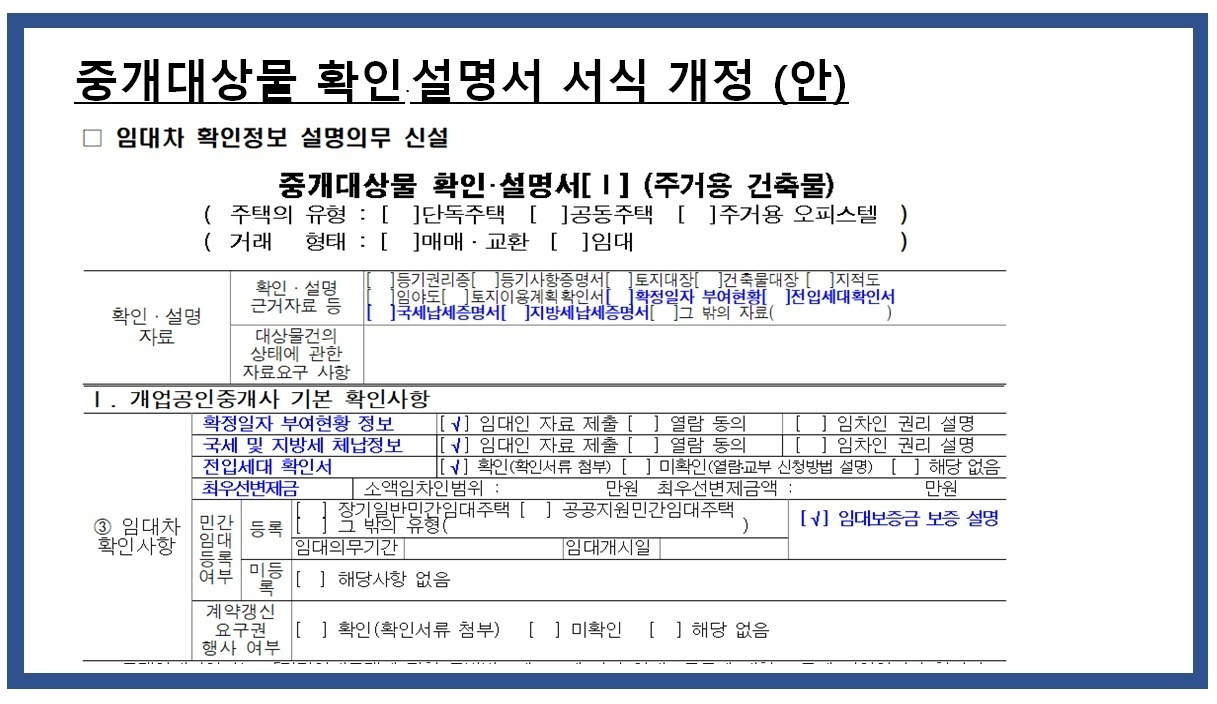 임대차 계약시 중개대상물 확인설명의무 신설