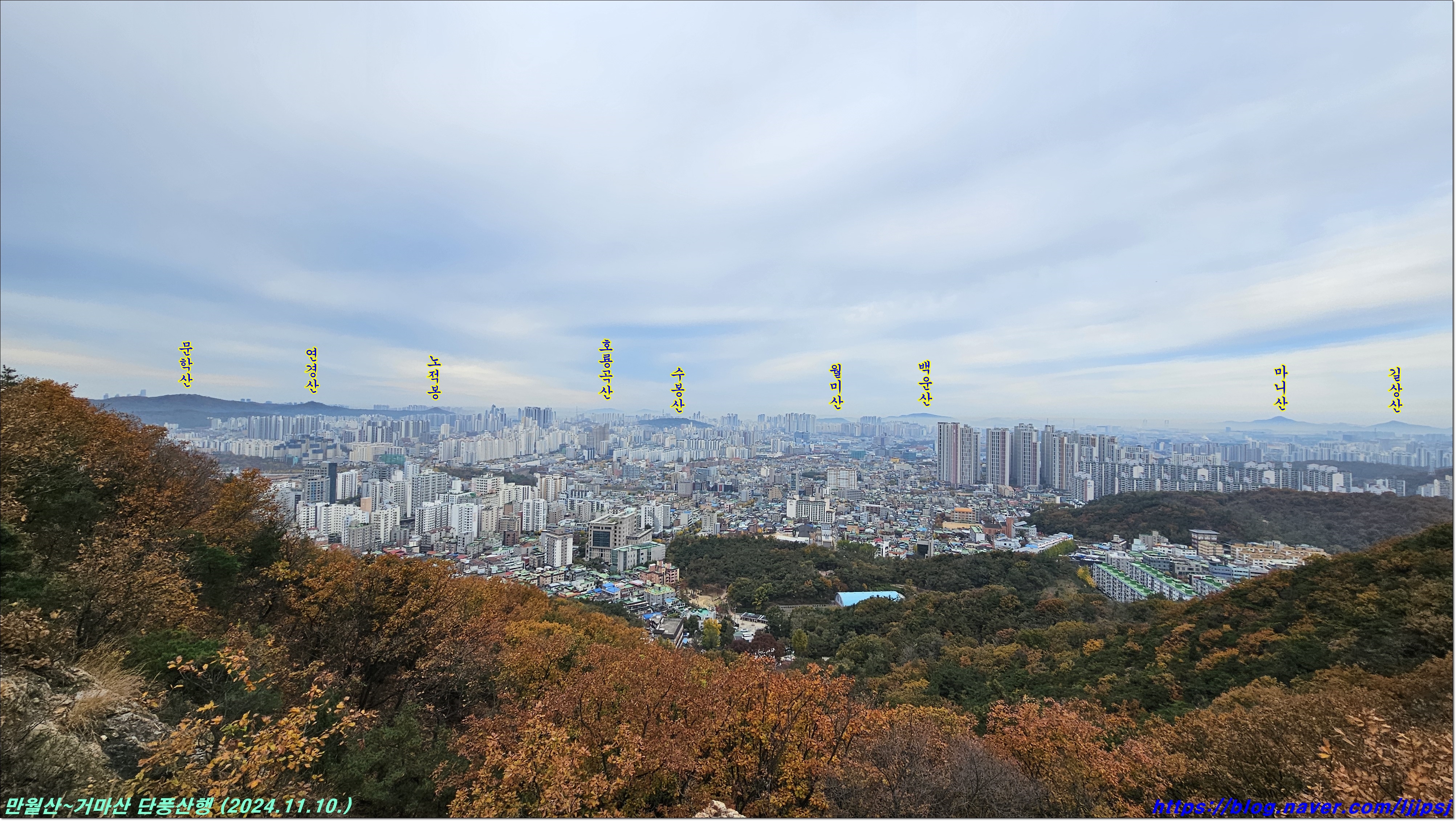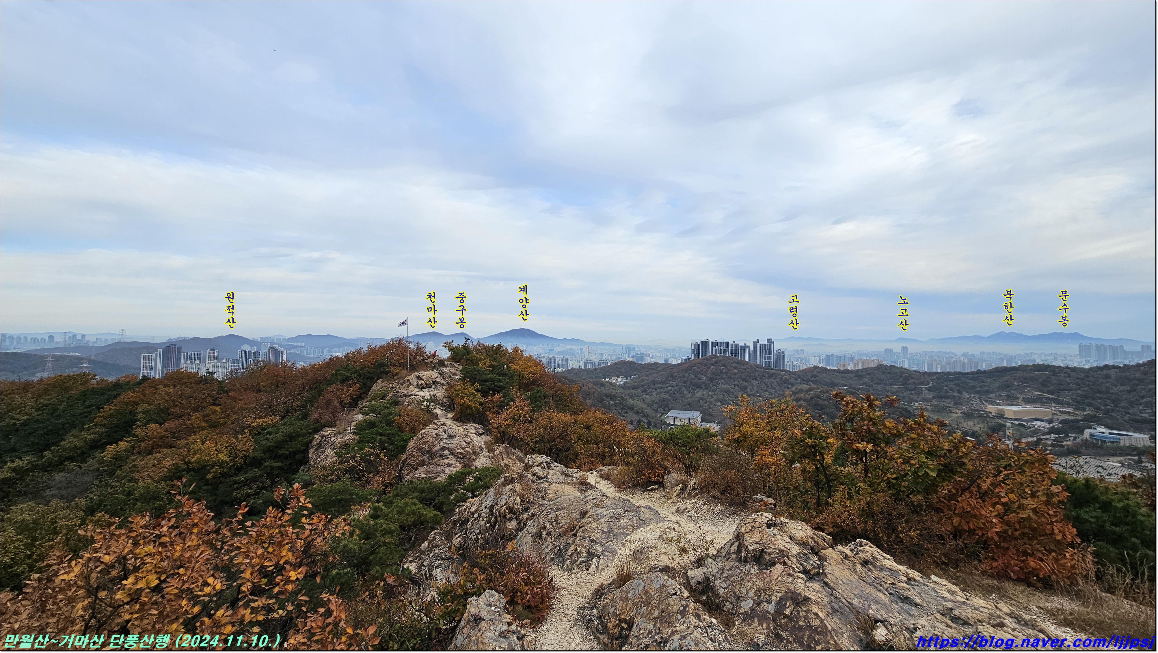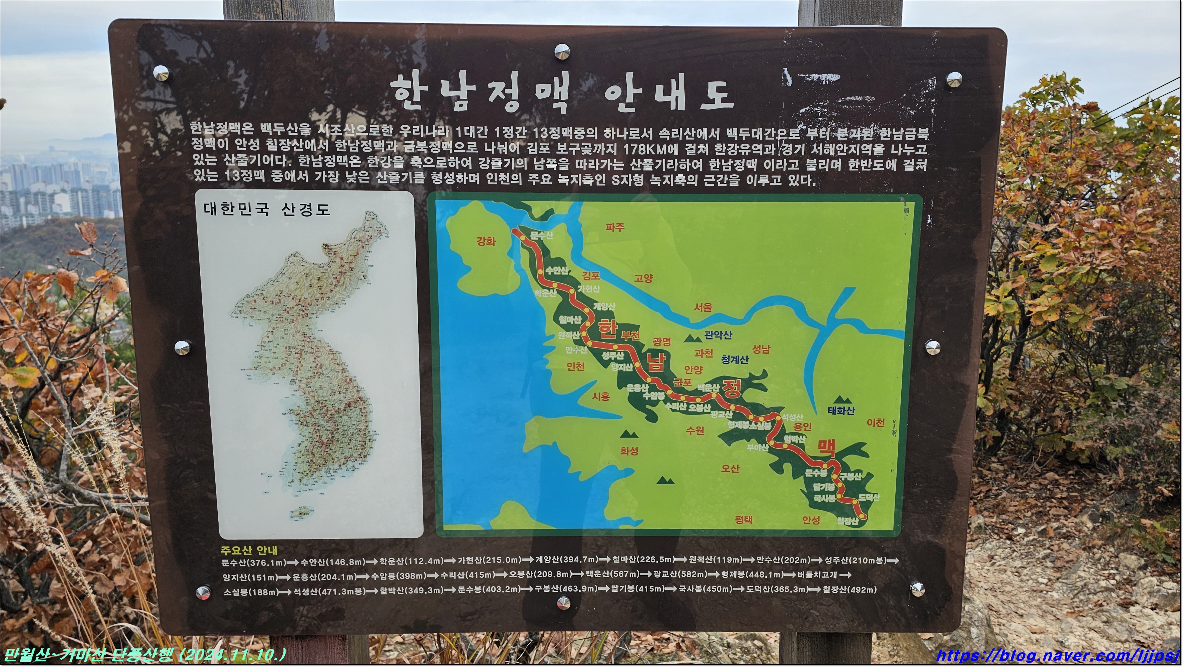 | 계양산~호봉산 단풍산행 (계산역-계양산-중구봉-천마산-원적산-호봉산-백운역) (2024.11.17.) (2) | 2024.11.18 |