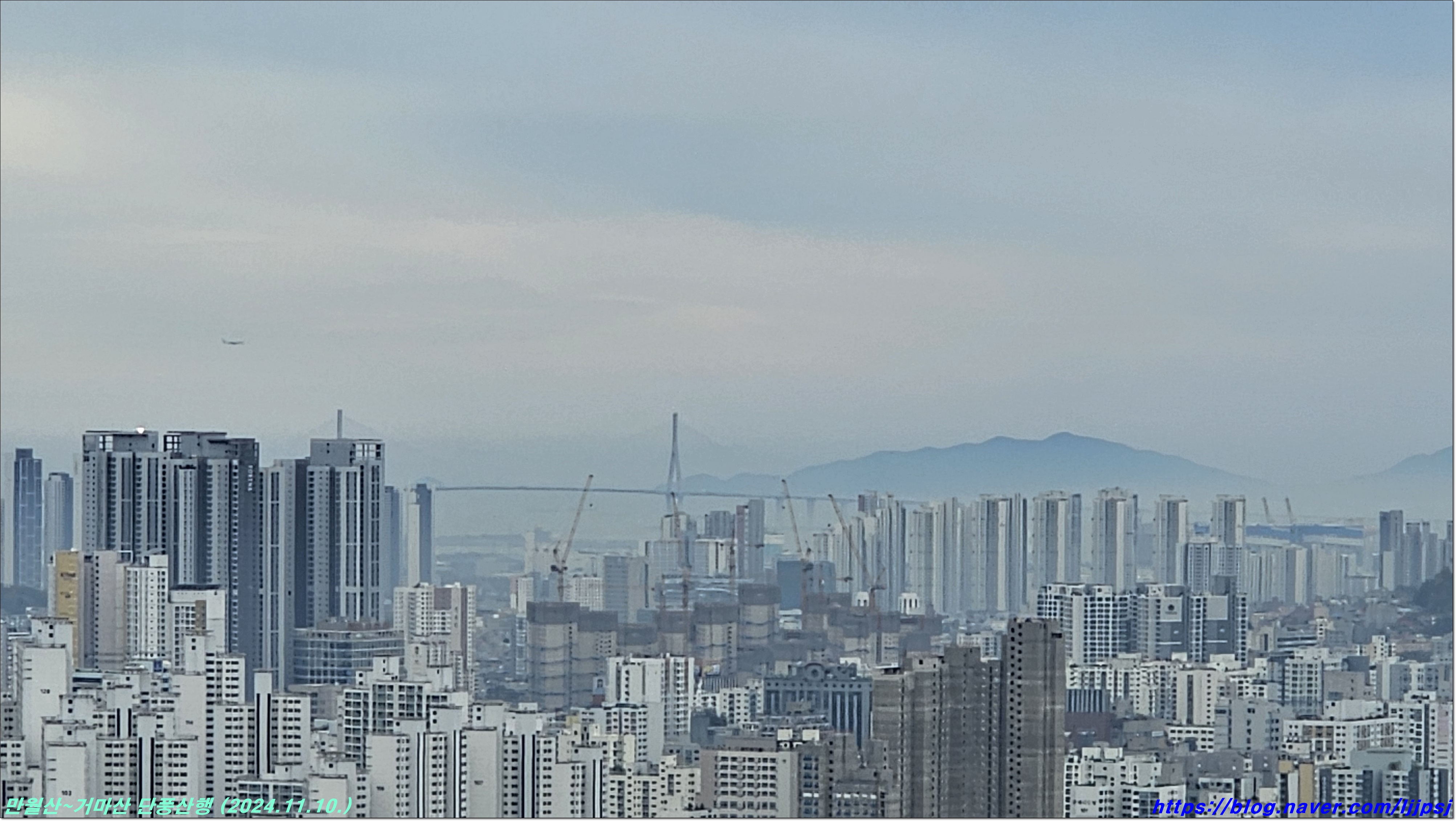 북한산과 우측 산능선 위로 올라선 부천 리첸시아