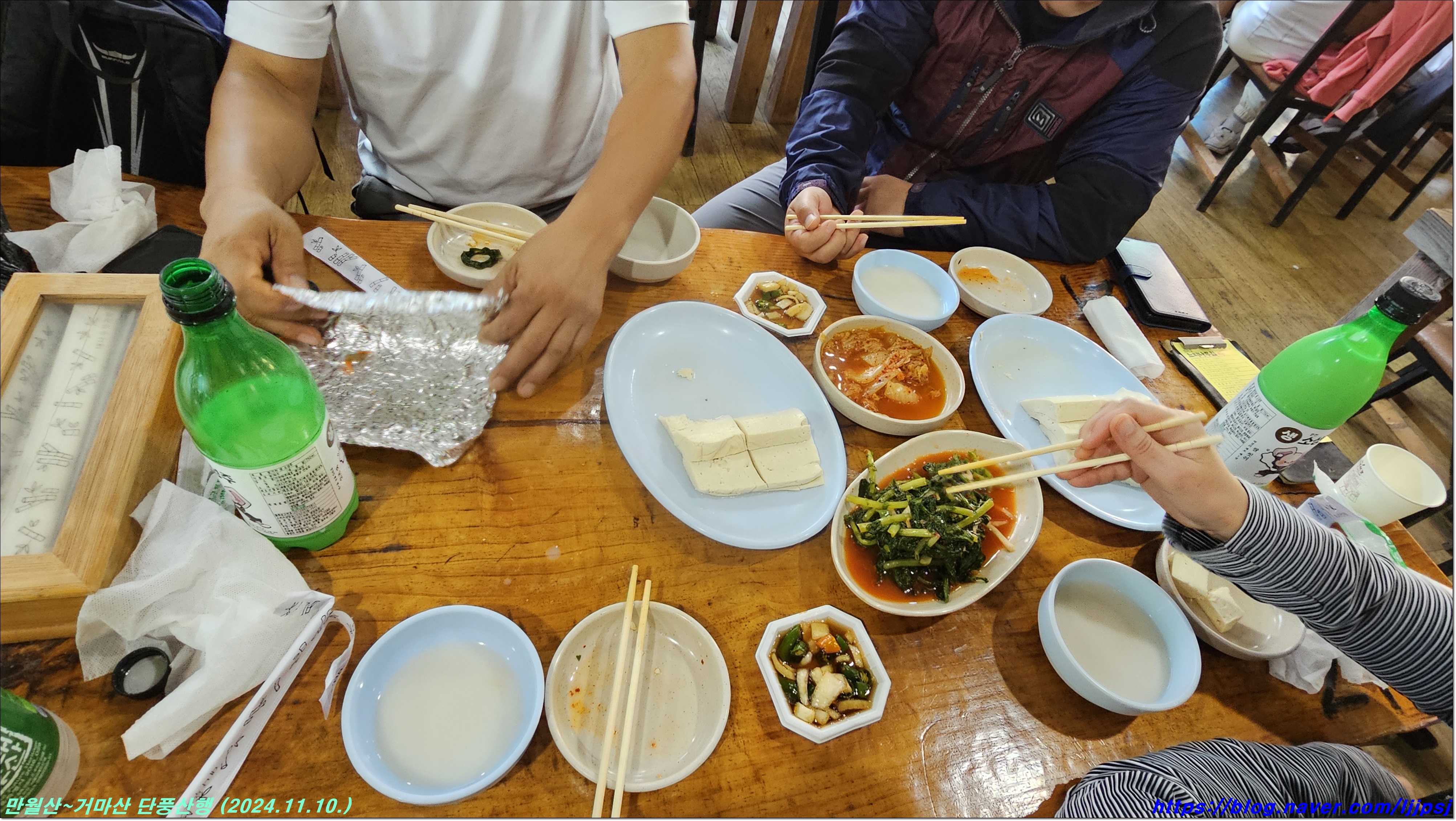 만의골로 내려와 두부김치에 막걸리 한잔까지 거하게 하고