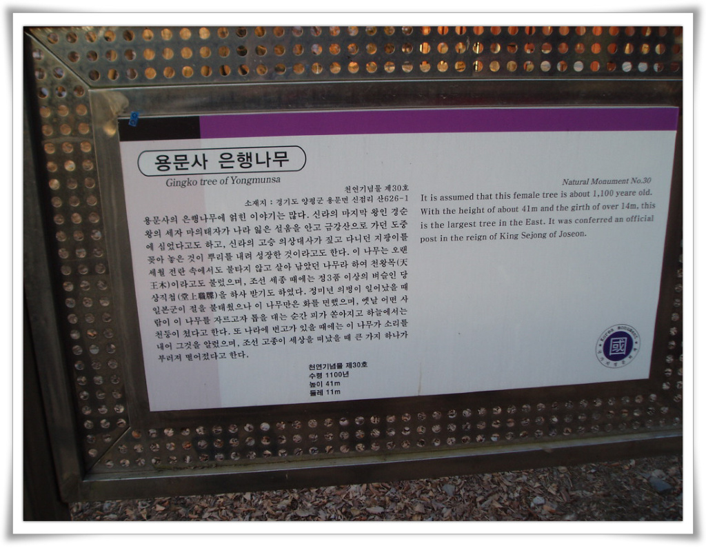 천연기념물:30호, 수령:1100년, 높이:41m, 둘레:11m....대단합니다...^^