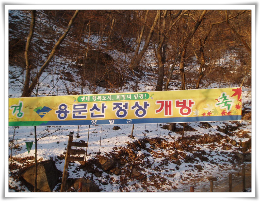 40년만에 개방으로 열린 용문산 정상을 축하하는 프랭카드가 있네요....ㅎㅎ
