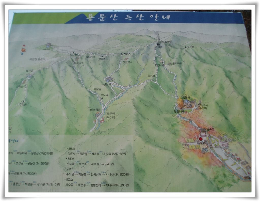 코 스 : 용문산관광단지주차장 - 용문사 - 용각바위 - 능선길삼거리갈림길 - 용문산정상
