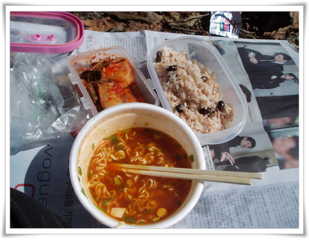 늦은 점심...컵라면에 밥을 말아 김치를 얹어 먹으면 이보다 꿀맛이 없지요...^^